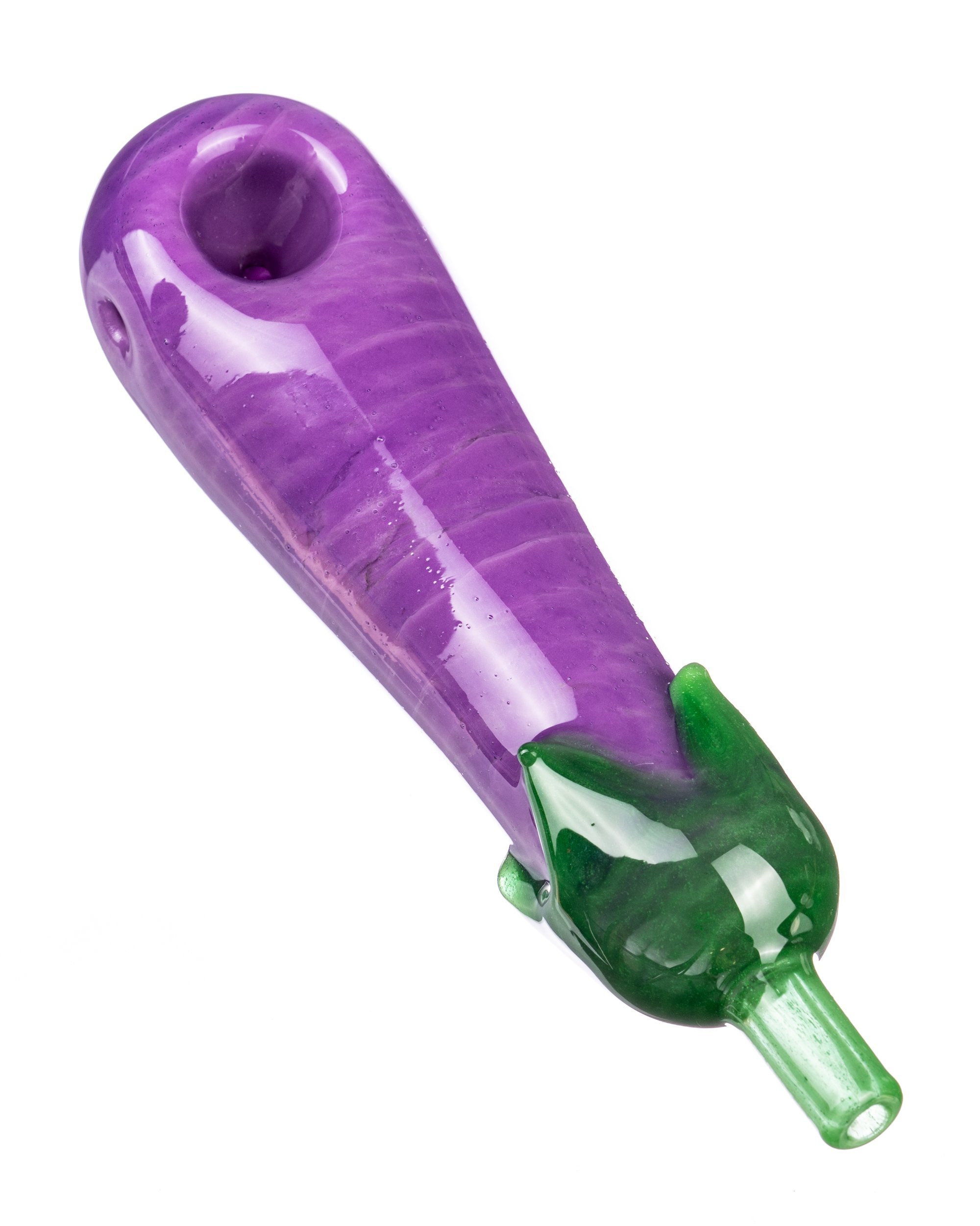 You already send this emoji to bae, so why not smoke out of it? This titillating themed piece from Empire Glassworks – expert glassblowers from the USA – features green glass overlay with a mouthpiece and a shaft of purple glass. It includes side carb and a deep bowl. This piece is 5″ long making it easy to hold.