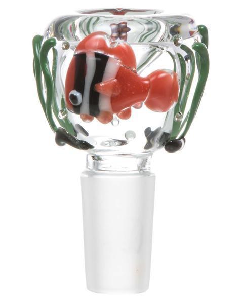 This under the sea replacement bowl by Empire Glassworks is perfect for all of you aquatic lovers out there. This male jointed bowl features an under the sea theme that really lets you personalize your water pipe. This slide fits perfectly onto your female jointed water pipe or dab rig. This replacement bowl is made by Empire Glassworks here in the USA. Choose between 14mm or 18mm.